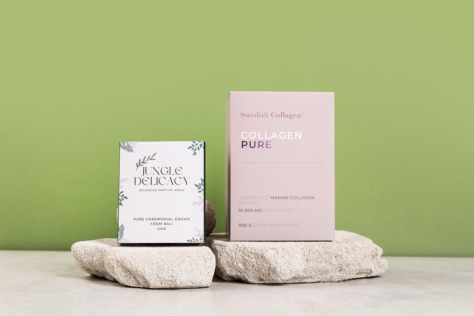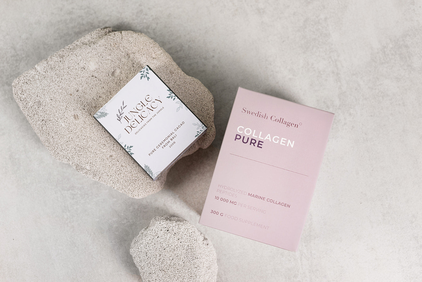 Rinkinyje kolagenas geresnės odos būklės palaikymui ir 200g ceremoninės kakavos jūsų ypatingiems vakaro ritualams, bei širdies ir kraujagyslių sistemos funkcijai gerinti.
